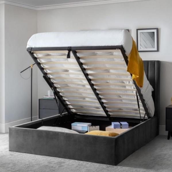 Description: The Langham Storage Bed is designed with a luxurious scalloped headboard that would look perfect in various bedroom décor settings, alongside an ottoman base, which is perfect for those that need to maximise storage space in their bedroom. This stunning bed is both classy and practical – perfect for modern homes. Available in a gorgeous teal or elegant grey.