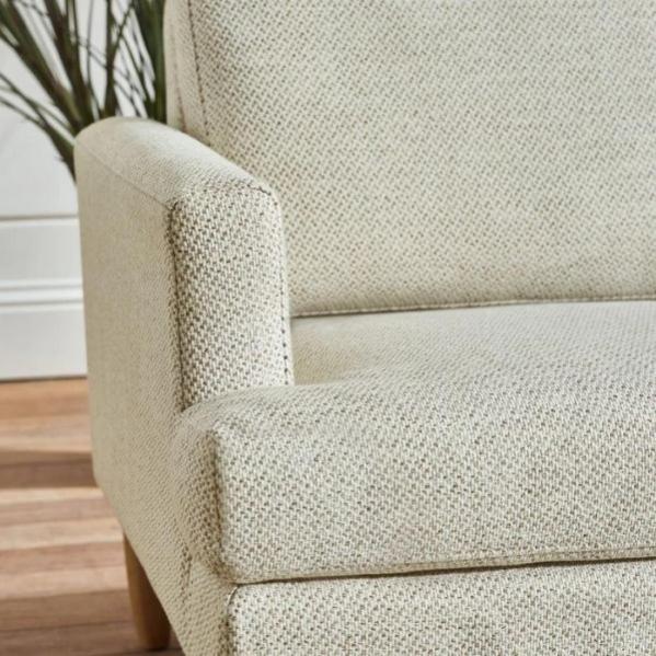 Description: Add a sense of calm and character to your living space with this compact 2 seater sofa in Pearl Barley. Upholstered in soft beige chenille fabric with a subtle woven texture, it delivers a cosy and supportive seat with understated warmth. The clean lines, gently curved arms, and raised wooden effect legs give this small couch a timeless and airy look, effortlessly suiting both classic and contemporary interiors.