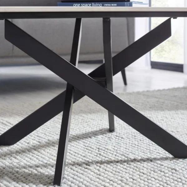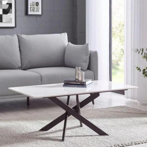 Description: Bring sophistication to your living room with the Bradley White Marble Coffee Table. The luxurious ceramic top, with its beautiful Italian white marble effect, creates a striking focal point in any space. Supported by a durable black powder-coated steel spider-shaped leg design, offering both strength and style. Perfect for showcasing decorative items or enjoying a coffee break, this table adds timeless elegance to your home.