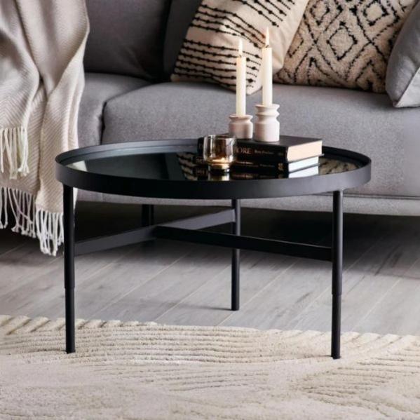 Description: Upgrade your living room with the Franki Mirror Glass Coffee Table, a contemporary take on classic design. Its sleek mirrored tabletop brings a touch of glamour and adds a sophisticated shine, reflecting light and creating a spacious feel. The black metal frame offers a bold contrast, while the raised barrier design gives it a unique twist.