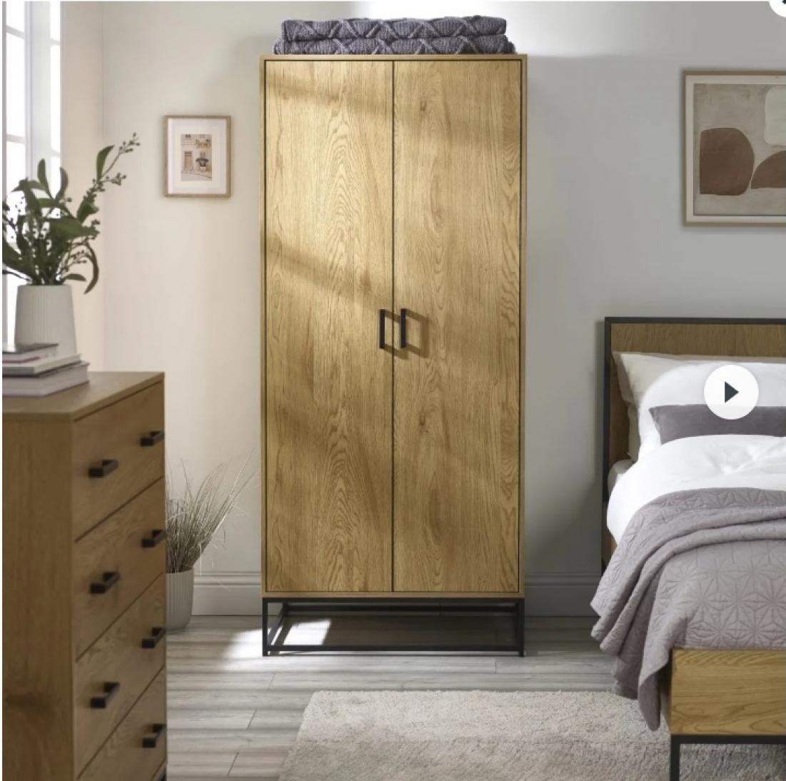 The Harlow Bedroom Collection perfectly blends elegance with modern industrial charm. Featuring a warm light oak-effect finish with natural wood grain and contrasting slim black frames, each piece adds style and sophistication to your space. From the spacious wardrobe to the sleek chest of drawers, bedside tables, and beautifully crafted bed frame, the collection offers both practicality and aesthetic appeal. Smooth-glide drawers with recessed black handles ensure effortless storage, while the sturdy design brings a refined yet contemporary touch to your bedroom. Self-assembly required.